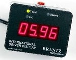 Grote verlichte cijfers van 15 mm hoogte. Electronische calibratie, indicatie per 1/100 mijl of km. Bij afwijking van het rallyboek is de totaalmeter tijdelijk sneller of langzamer in te stellen met extra derde display, voor snelheidsmeting.